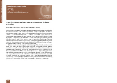 Gubény Viktor Zoltán: Áruló vagy patrióta? : Ivan Mazepa árulásának kérdése : [absztrakt].