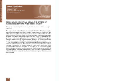 Varga Laura Dana: Personal and political nexus: the letters of queen Elizabeth I to the duke of Anjou : [abstract].