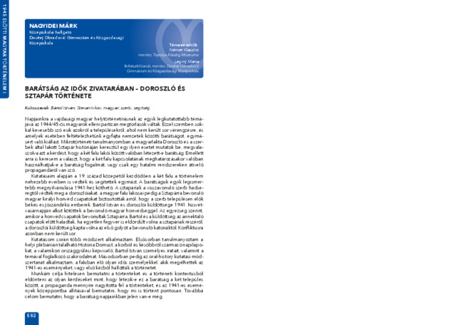 Nagyidei Márk: Barátság az idők zivatarában - Doroszló és Sztapár története : [absztrakt].