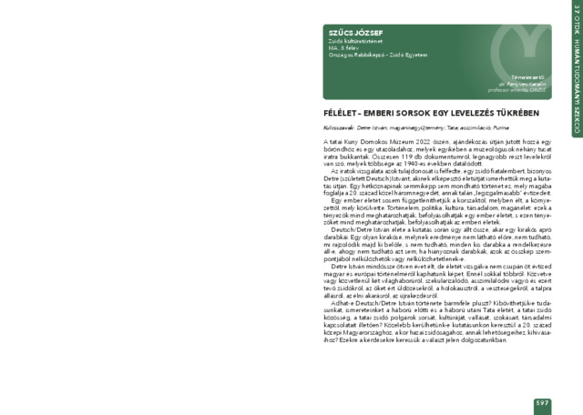 Szűcs József: Félélet - emberi sorsok egy levelezés tükrében : [absztrakt].