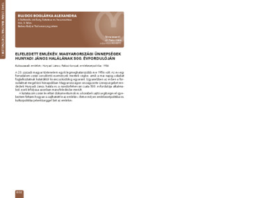 Bujdos Boglárka Alexandra: Elfeledett emlékév : magyarországi ünnepségek Hunyadi János halálának 500. évfordulóján : [absztrakt].