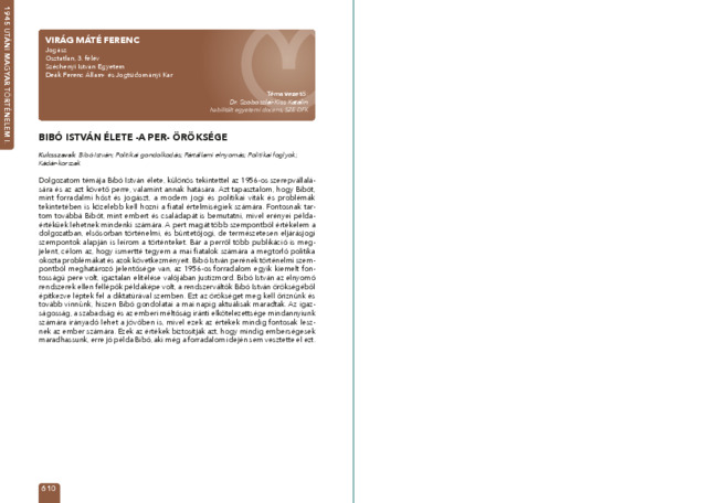Virág Máté Ferenc: Bibó István élete - A per - Öröksége : [absztrakt].