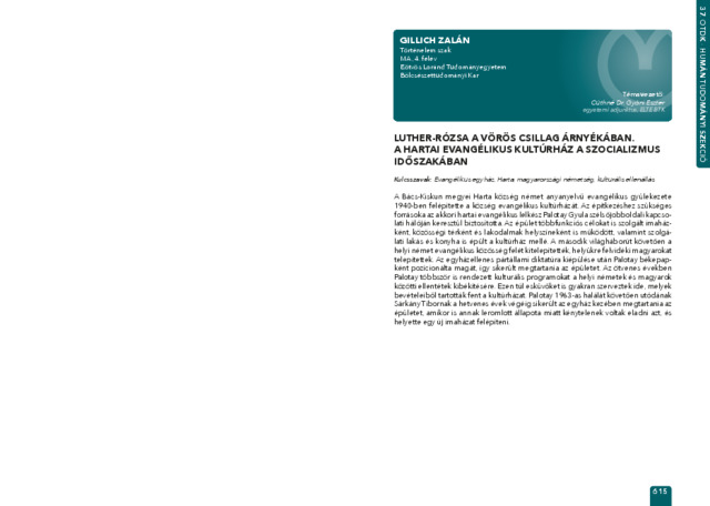 Gillich Zalán: Luther-rózsa a vörös csillag árnyékában : a hartai evangélikus kultúrház a szocializmus időszakában : [absztrakt].