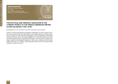 Minasyan Anna: The political and feminist landscape in the literary world of the French Armenian writer Louise Aslanian : 1904-1945 : [abstract].