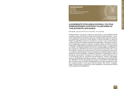 Katona Bálint: A konzervatív populizmus kihívásai : politikai átrendeződések az Egyesült Államokban az 1990-es évektől napjainkig : [absztrakt].