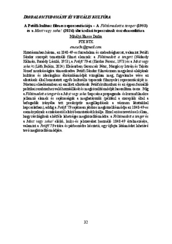 Mihályi Emese Dorka: A Petőfi-kultusz filmes reprezentációja - a Föltámadott a tenger (1953) és a Most vagy soha! (2024) ábrázolási toposzainak összehasonlítása : [absztrakt].
