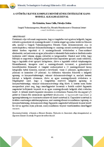 Kis Krisztián; Samu Csilla; Fabulya Zoltán: A gyümölcslevek komplex minőségének értékelése Kano-modell alkalmazásával : [absztrakt].