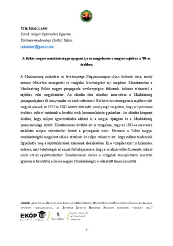 Csík Ádám Lajos: A Békés megyei munkásőrség propagandája és megjelenése a megyei sajtóban a '80-as években : [absztrakt].