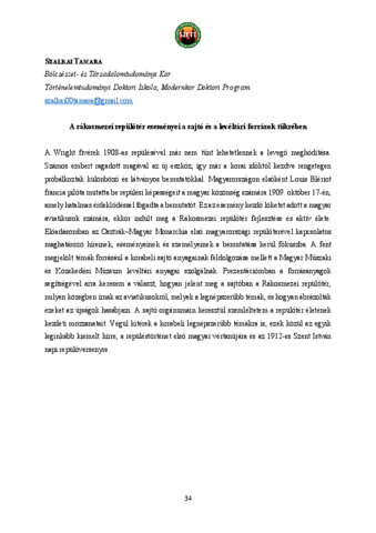Szalkai Tamara: A rákosmezei repülőtér eseményei a sajtó és a levéltári források tükrében : [absztrakt].