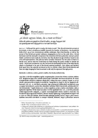 Matus László: "A lélek ugyan kész, de a test erőtlen" : szlovák pátensmozgalom Pest-Budán, avagy hogyan lett az igazságszerető szíjgyártó a nemzet tanítója. In: Aetas, (39) 2. pp. 72-85. (2024)