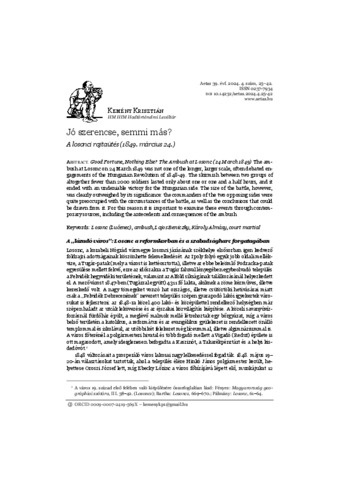 Kemény Krisztián: Jó szerencse, semmi más? : a losonci rajtaütés 1849. március 24. In: Aetas, (39) 4. pp. 25-42. (2024)