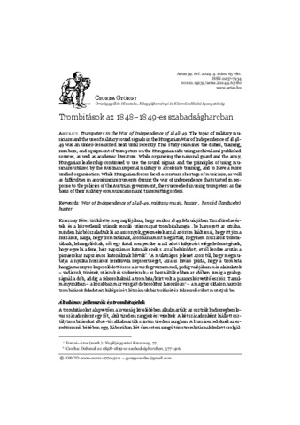 Csorba György: Trombitások az 1848-1849-es szabadságharcban. In: Aetas, (39) 4. pp. 65-80. (2024)