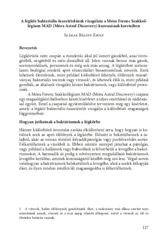 | Egyéb cím: | Researching the bacterial composition of the air within the framework of the MAD (Móra Astral Discovery) course of Móra Ferenc College |