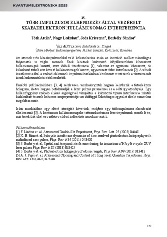 Tóth Attila; Nagy Ladislau; Joós Krisztina; Borbély Sándor: Több-impulzusos elrendezés által vezérelt szabadelektron hullámcsomag interferencia.