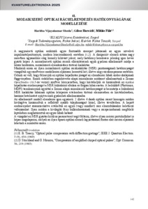 Vijayakumar Sheela Haritha; Horváth Gábor; Füle Miklós: Mozaikszerű optikai rácselrendezés hatékonyságának modellezése.