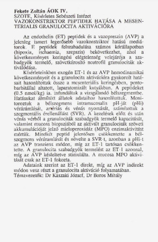 Fekete Zoltán: Vazokonstriktor peptidek hatása a mesenterialis granulocita aktivációra : [absztrakt].