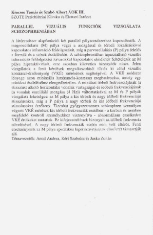 Kincses Tamás; Szabó Albert: Parallel vizuális funkciók vizsgálata schizophreniában : [absztrakt].