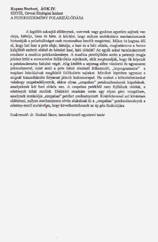 Kopasz Norbert: A petekezdemény polarizálódása : [absztrakt].