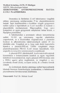 Wolfárd Krisztina: Szerotonerg antidepresszánsok E. coli plazmidokra : [absztrakt].