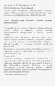Bata Beáta; Bihari Renáta: Laikus elsősegélynyújtás oktatása a modern oxyológia irányelvei szerint : [absztrakt].