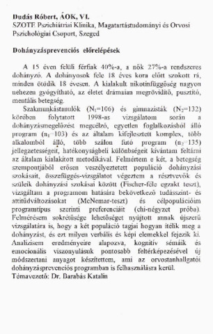 Dudás Róbert: Dohányzásprevenciós előrelépések : [absztrakt].
