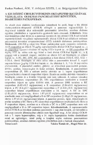 Farkas Norbert: A kis dózisú cholecystokinin-oktapeptid hatásának vizsgálata oedemas pancreatitist követően, diabeteses patkányban : [absztrakt].