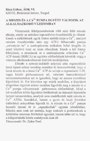 Rácz Gábor: A miozin és a Ca²⁺ pumpa együtt változik az alkalmazkodó vázizomban : [absztrakt].