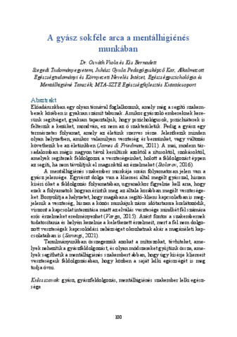 Osváth Viola; Kis Bernadett: A gyász sokféle arca a mentálhigiénés munkában. In: Aranymetszetben az egészség : interdiszciplináris tanulmányok az Alkalmazott Egészségtudományi és Környezeti Nevelés Intézet tudományos műhelyeiből. pp. 100-105. (2025)