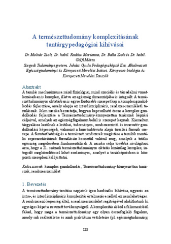 | Kulcsszavak: | Tanárképzés - természettudományi, Komplex gondolkodás, Tantárgypedagógia - természettudományok |