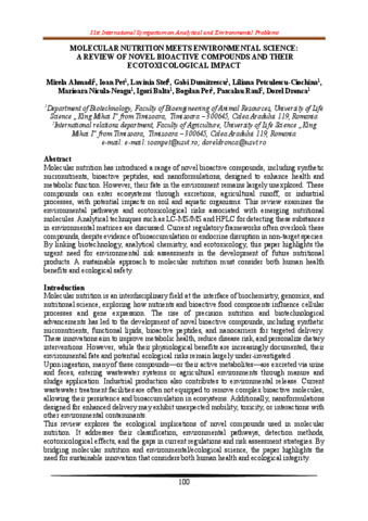 Ahmadi Mirela; Pet Ioan; Ştef Lavinia; Dumitrescu Gabi; Petculescu-Ciochină Liliana; Nicula-Neagu Marioara; Balta Igori; Pet Bogdan; Pascalau Raul; Dronca Dorel: Molecular nutrition meets environmental science: a review of novel bioactive compounds and their ecotoxicological impact.