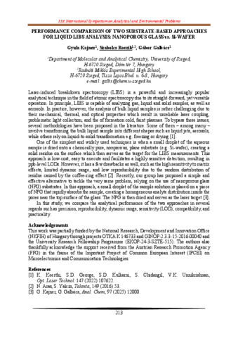 Kajner Gyula; Roszik Szabolcs; Galbács Gábor: Performance comparison of two substrate-based approaches for liquid LIBS analysis: Nanoporous glass vs. Si-wafer : [abstract].