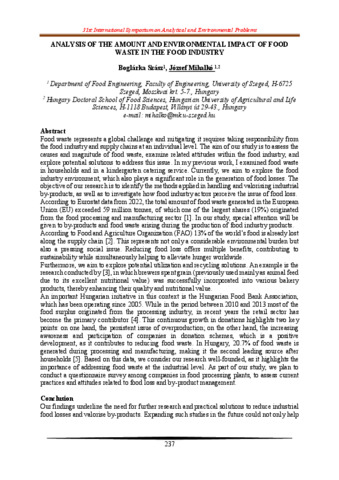 Szász Boglárka; Mihalkó József: Analysis of the amount and environmental impact of food waste in the food industry : [abstract].
