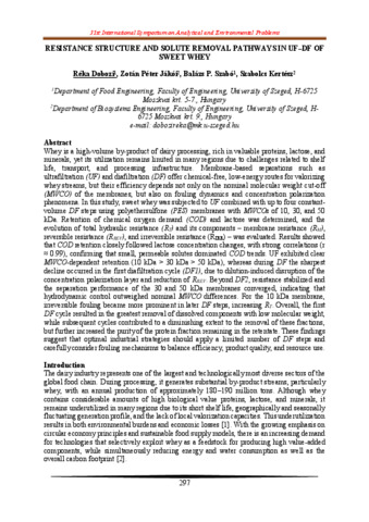 Dobozi Réka; Jákói Zoltán; Szabó P. Balázs; Kertész Szabolcs: Resistance structure and solute removal pathways in UF–DF of sweet whey.