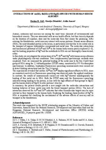 Gál Dorina R.; Dömötör Orsolya; Jancsó Attila: Interactions of As(III), Sb(III) and Hg(II) species with human serum albumin : [abstract].