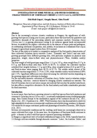 Mali-Gáspár Edit; Simon Gergely; Ficzek Gitta: Investigation of some physical and physicochemical characteristics of Cornelian cherry (Cornus mas L.) genotypes.