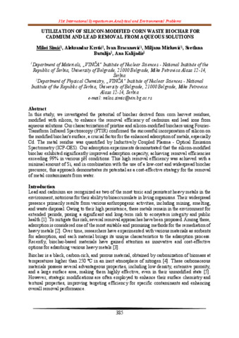 Simić Miloš; Krstić Aleksandar; Bracanović Ivan; Mirković Miljana; Butulija Svetlana; Kalijadis Ana: Utilization of silicon-modified corn waste biochar for cadmium and lead removal from aqueous solutions.