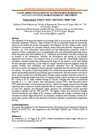 Kovács Tamás; Szabó P. Balázs; Krisch Judit; Takó Miklós: Value-added utilization of oat processing residues via Rhizomucor miehei-based enzymatic treatment : [abstract].