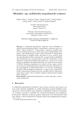 Berkecz Péter; Zombori Tamás; Banga Gergő; Szabó Gergő; Szántó Zsolt; Novák Attila; Farkas Richárd: SHunQA: egy nyíltkérdés-megválaszoló rendszer.