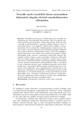 Berend Gábor: Neurális nyelvi modellek látens szemantikus információ alapján történő maszkolásmentes előtanítása.