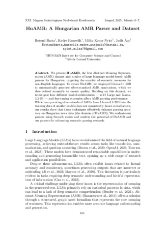 Barta Botond; Hamerlik Endre; Konor Nyist Milán; Ács Judit: HuAMR: a Hungarian AMR Parser and Dataset.