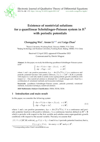 Wei Chongqing; Li Anran; Zhao Leiga: Existence of nontrivial solutions for a quasilinear Schrödinger-Poisson system in R3 with periodic potentials. (2023)