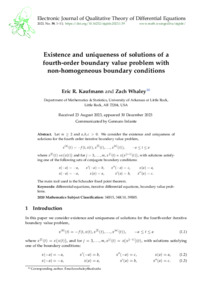 Kaufmann Eric R.; Whaley Zach: Existence and uniqueness of solutions of a fourth-order boundary value problem with non-homogeneous boundary conditions. (2023)