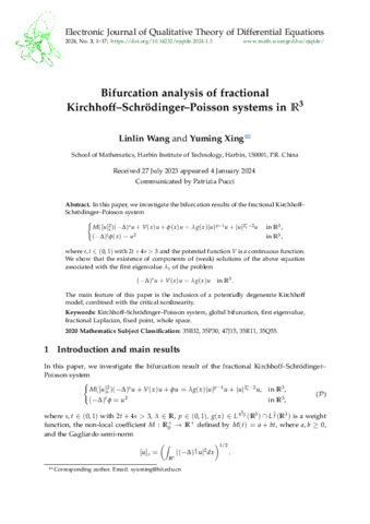 Wang Linlin; Xing Yuming: Bifurcation analysis of fractional Kirchhoff-Schrödinger-Poisson systems in R3. (2024)