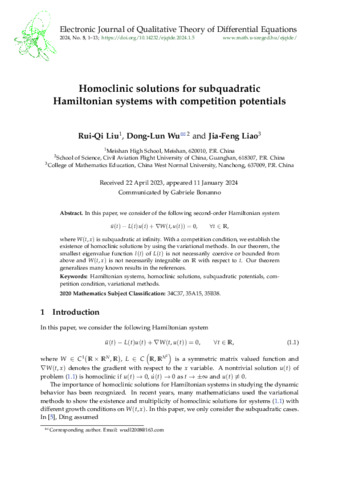 Liu Rui-Qi; Wu Dong-Lun; Liao Jia-Feng: Homoclinic solutions for subquadratic Hamiltonian systems with competition potentials. (2024)