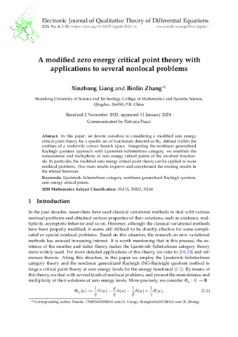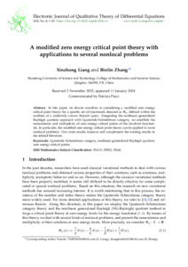 Liang Xinzhong; Zhang Binlin: A modified zero energy critical point theory with applications to several nonlocal problems. (2024)