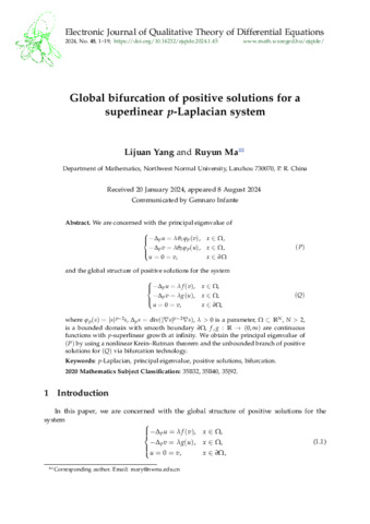 Yang Lijuan; Ma Ruyun: Global bifurcation of positive solutions for a superlinear p-Laplacian system. (2024)