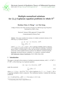 Chen Renhua; Wang Li; Song Xin: Multiple normalized solutions for (2, q)-Laplacian equation problems in whole RN. (2024)