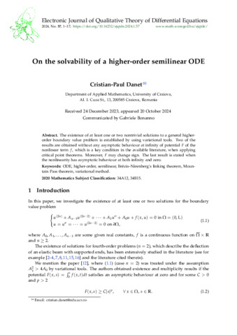 Danet Cristian-Paul: On the solvability of a higher-order semilinear ODE. (2024)