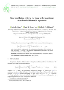 Graef John R.; Grace Said R.; Chhatria Gokula N.: New oscillation criteria for third order nonlinear functional differential equations. (2024)