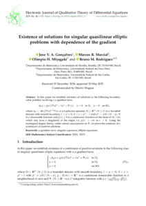 Goncalves Jose V. A.; Marcial Marcos R.; Miyagaki Olimpio H.; Rodrigues Bruno M.: Existence of solutions for singular quasilinear elliptic problems with dependence of the gradient. (2025)